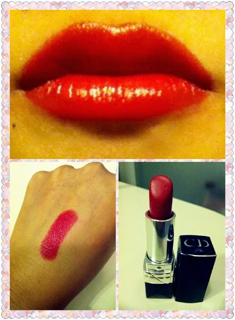 Now we are onto RED. My fav colour of all time. It's my go-to evening lip colour. This is the Rouge Dior in 999. (Can you tell I like Dior lipsticks?!) Perfect red in my opinion. I got it again from sephora italia, and it costs 31 euros. This is unlike the Addict Extreme line, it's more creamy in texture and very, I repeat very opaque. One layer and you are good to go. And may I just say It's a tad glossy as well, just a little, it's more velvety so don't need a gloss over it. Well I don't like my red too glossy anyway so this is perfect. But you can wear it with a gloss if you are into glossy effect. It's not drying on the lip, feels very comfortable. It wears quite nicely throughout the night but you do need to touchup after a meal.